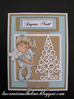On peut aussi créer un effet vitrail comme dans l'exemple ci-après avec ma carte. J'ai mis mon motif sur un acétate et je l'ai colorié. Les peel-offs donnent un tres beau résultat à la finition d'une carte ou autre création.